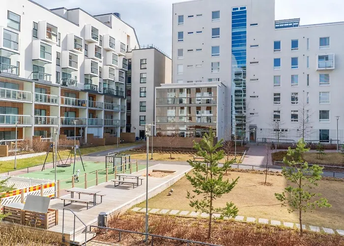 Messipojankuja 버스 정류장은 아파트에서 도보로 5분 거리에 있습니다.